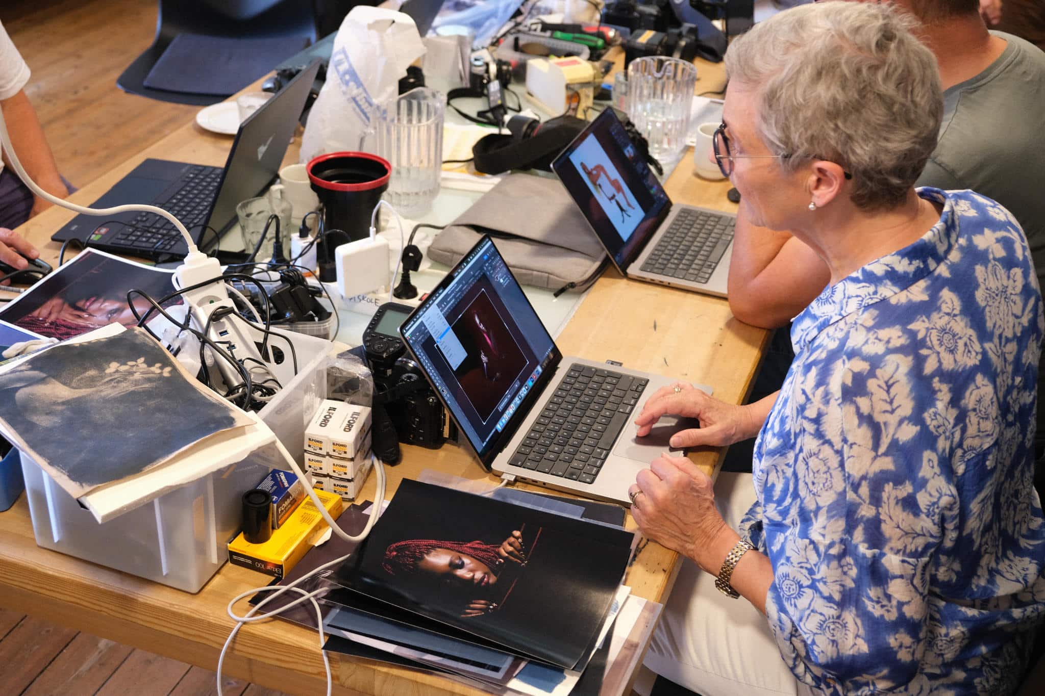 Vi arbejder både i sort/hvid og farve og med analoge teknikker og de mange muligheder i det digitale portrætfoto. I den analoge verden dykker vi ned i forskellige printteknikker som cyanotypi og flydende emulsion, der kan give dit portræt et helt særegent præg.