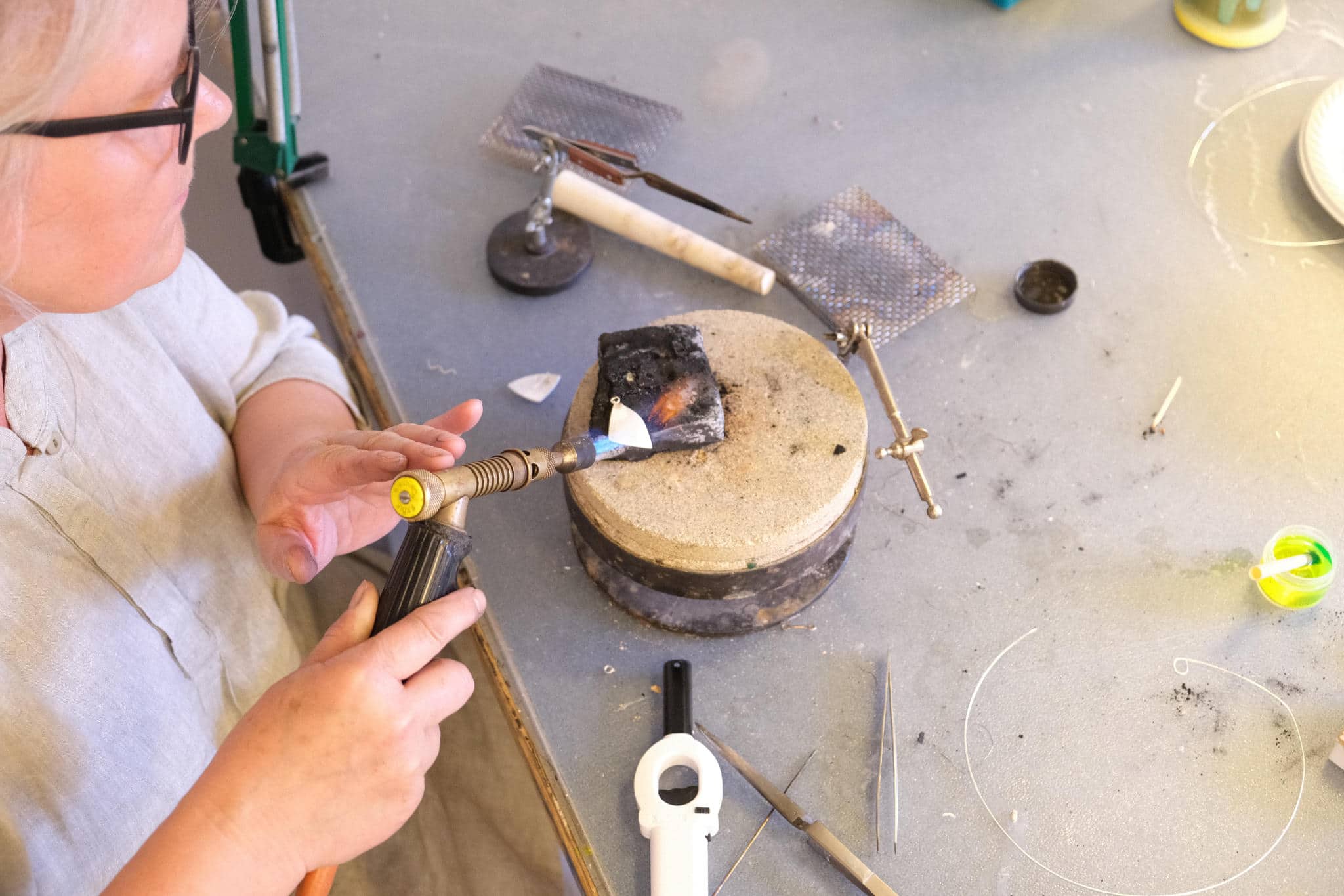 Undervisningen vil være en vekselvirkning mellem oplæg i plenum og personlig vejledning, og vi kommer rundt om de mest basale teknikker inden for guldsmedehåndværket. Målet er, at du som deltager får prøvet kræfter med en bred vifte af teknikker og derved får et godt indblik i, hvorledes smykker bliver til med håndens kraft – og at du vender hjem med et smykke (måske flere), du selv har skabt.